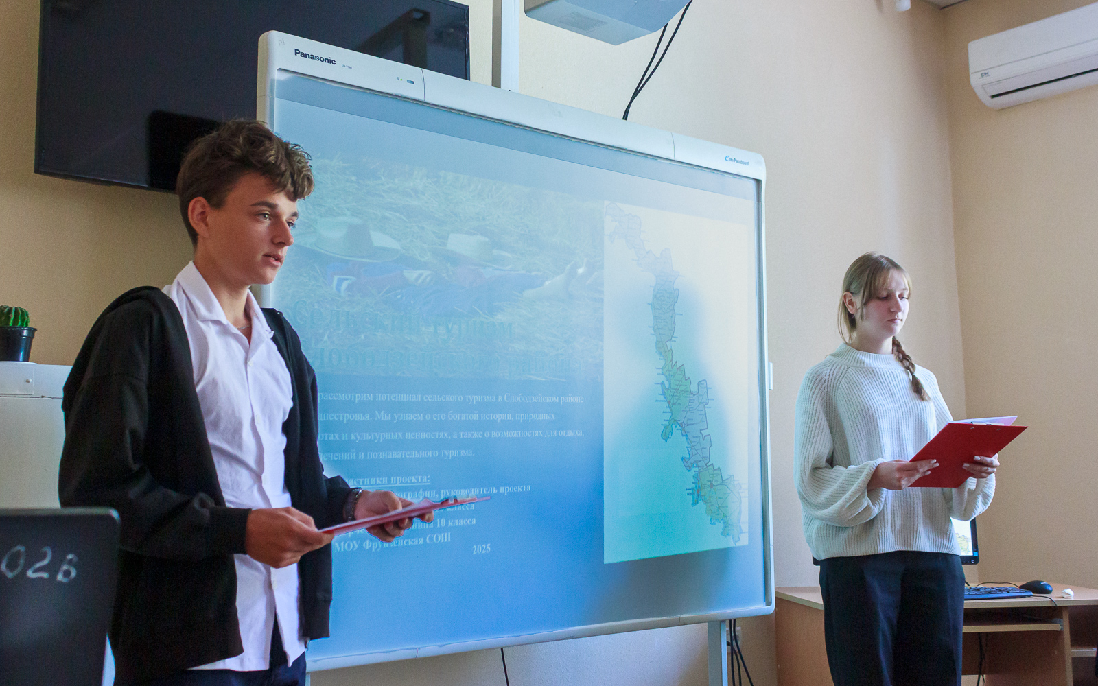 Тему сельского туризма в Слободзейском районе раскрыли ученики 10-го класса Фрунзенской средней школы Божена Норченко и Захар Рудюк.