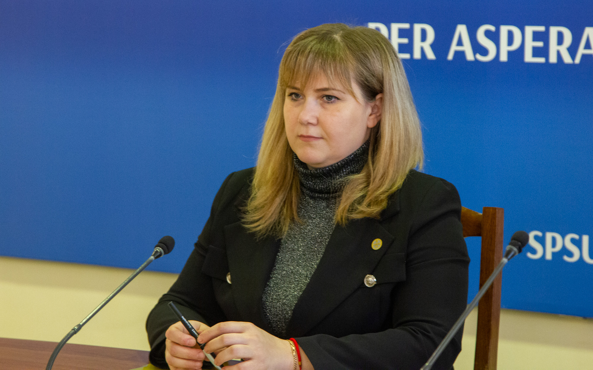Студентка четвертого курса Виталия Майборода поведала о студенческой жизни, особенностях обучения на естественно-географическом факультете, поделилась собственным опытом участия в интересных исследовательских работах, создании собственных проектов. Главное – это соблюдать баланс между теорией и практикой, посоветовала она старшеклассникам.