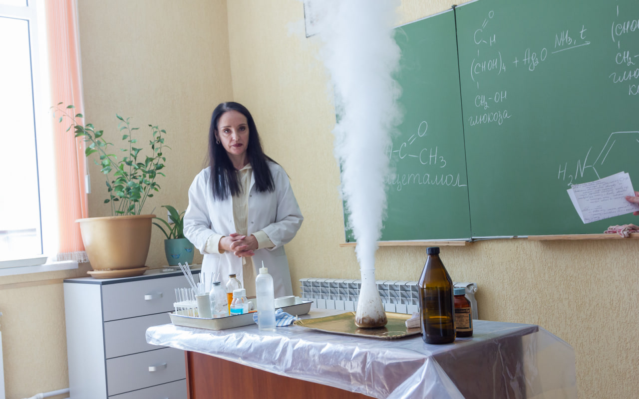 В лаборатории общей и неорганической химии преподаватель кафедры химии и техносферной безопасности И.И. Магурян и канд. биол. наук доцент Е.Н. Филипенко продемонстрировали химические опыты – экзотермическую реакцию «белого джина» и классическую реакцию «серебряного зеркала».