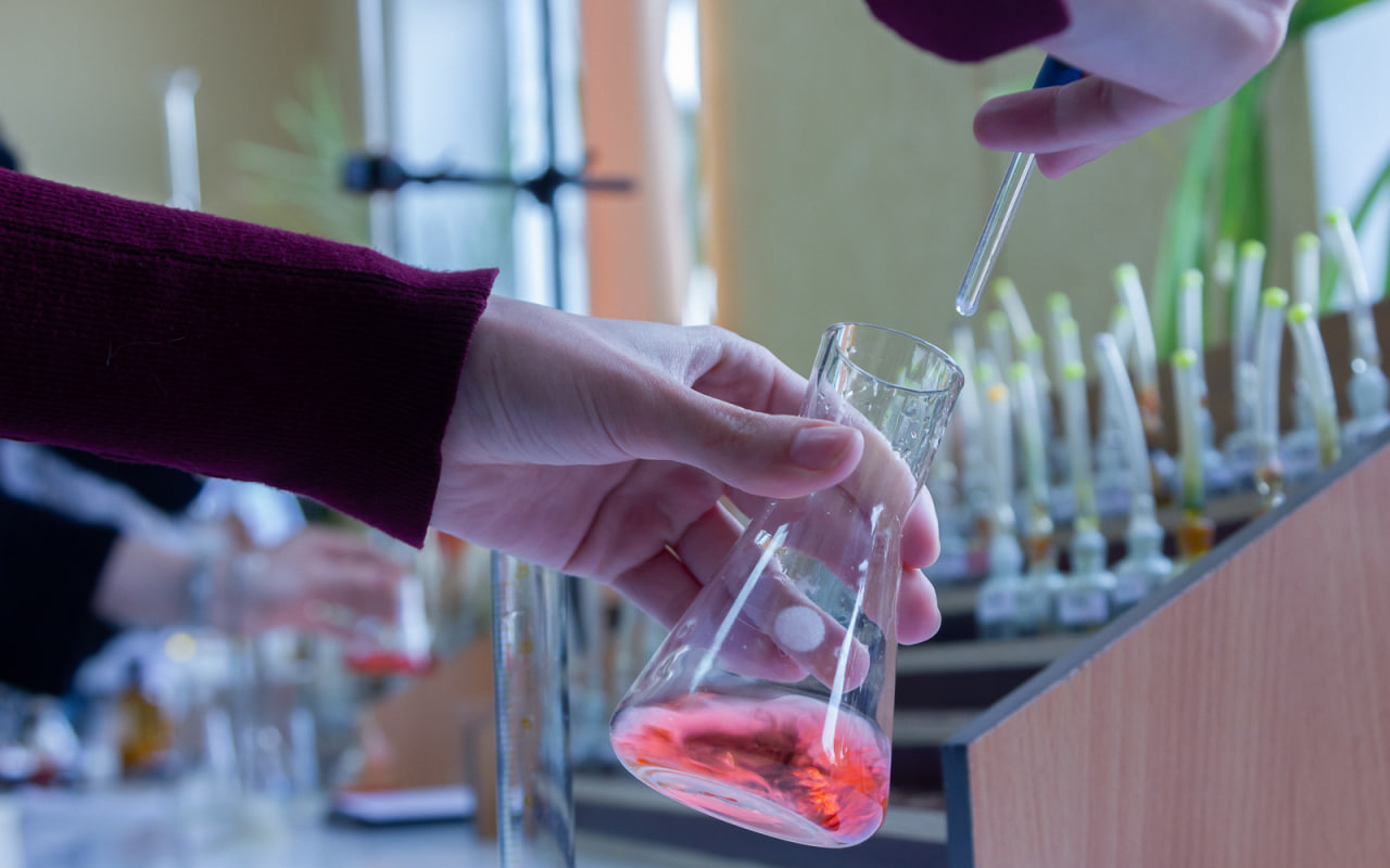 В лаборатории аналитической химии ст. преподаватель кафедры химии и техносферной безопасности Н.К. Попова познакомила ребят с процессом титрования – методом количественного анализа, позволяющим определить точную концентрацию вещества в растворе.