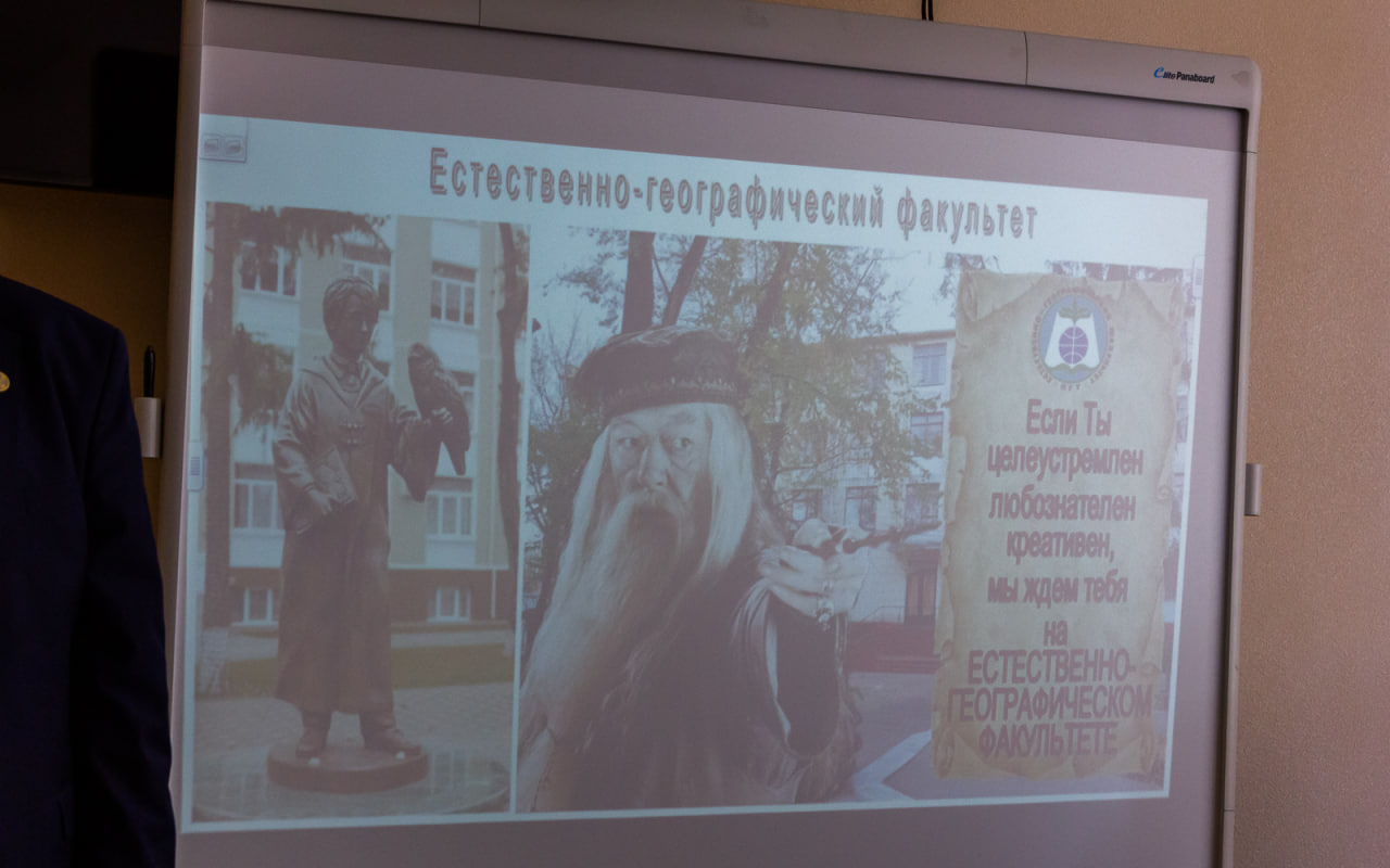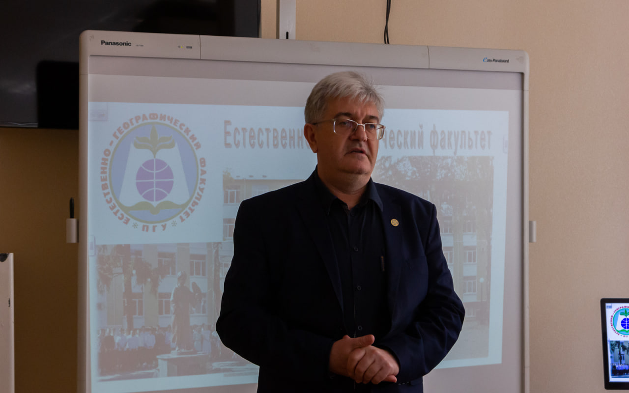 Говоря об особенностях и преимуществах обучения на факультете, декан назвал практикоориентированность, научные экспедиции, обширную лабораторную практику, возможность проживания в общежитии для иногородних студентов, перспективы трудоустройства и многое другое. Сергей Иванович сообщил, что в структуру ЕГФ входят три музея (зоологический, геолого-минералогический и палеонтологический) с богатыми музейными коллекциями. С 2020 года на базе ЕГФ активно действует Приднестровский центр Русского географического общества.